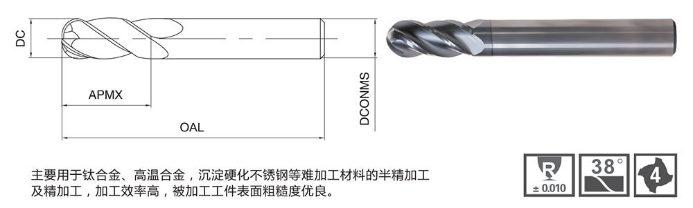 主要用于钛合金、高温合金,沉淀硬化不锈钢等难加工材料的半精加工 及精加工,加工效率高,被加工工件表面粗糙度优良。
