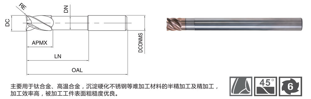 主要用于钛合金、高温合金,沉淀硬化不锈钢等难加工材料的半精加工及精加工